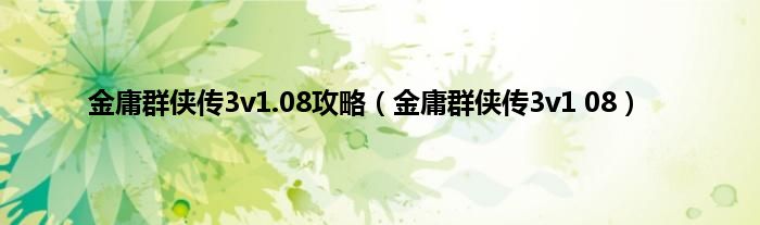 大家好,小问来为大家解答以上问题。金庸群侠传3v1.08攻略,金庸群侠传3v1 08这个很多人还不知道,现在让我们一起来看看吧!