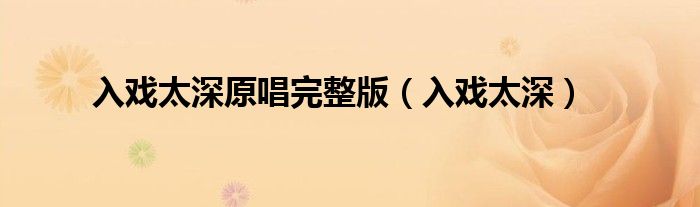大家好,小问来为大家解答以上问题。入戏太深原唱完整版,入戏太深这个很多人还不知道,现在让我们一起来看看吧!