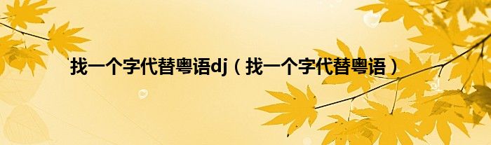 以上就是【找一个字代替粤语dj,找一个字代替粤语】相关内容。