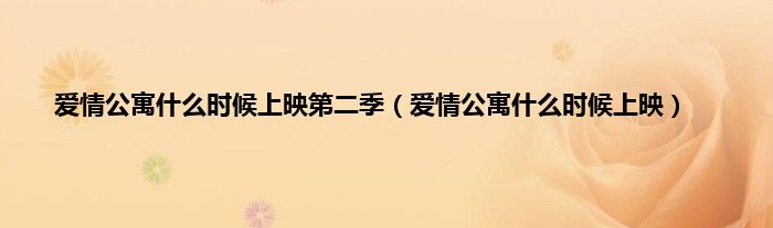 大家好,小问来为大家解答以上问题。爱情公寓什么时候上映第二季,爱情公寓什么时候上映这个很多人还不知道,现在让我们一起来看看吧!