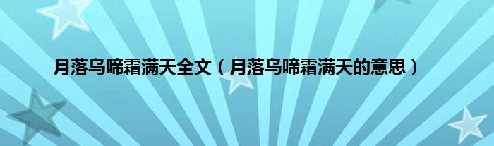 大家好,小问来为大家解答以上问题。月落乌啼霜满天全文,月落乌啼霜满天的意思这个很多人还不知道,现在让我们一起来看看吧!