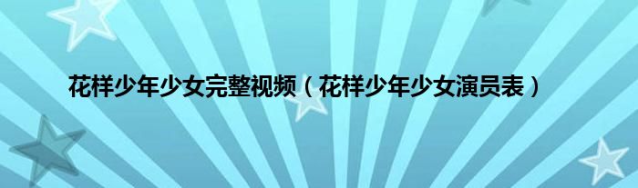 大家好,小问来为大家解答以上问题。花样少年少女完整视频,花样少年少女演员表这个很多人还不知道,现在让我们一起来看看吧!