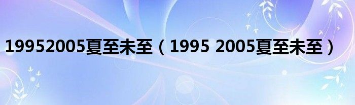 以上就是【19952005夏至未至,1995 2005夏至未至】相关内容。