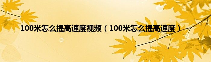 以上就是【100米怎么提高速度视频,100米怎么提高速度】相关内容。