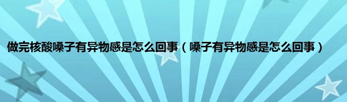 大家好,做完核酸嗓子有异物感是怎么回事,嗓子有异物感是怎么回事很多人还不知道,现在让我们一起来看看吧!