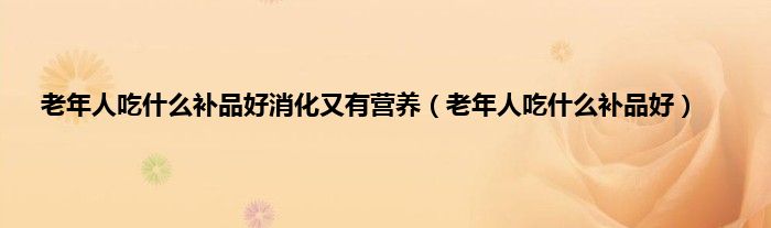 大家好,老年人吃什么补品好消化又有营养,老年人吃什么补品好很多人还不知道,现在让我们一起来看看吧!