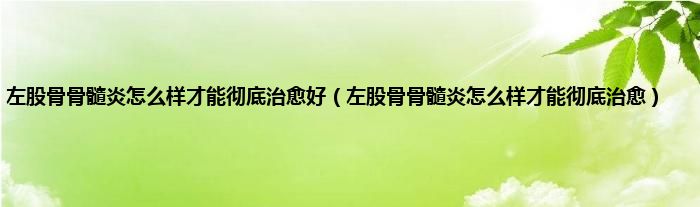 大家好,左股骨骨髓炎怎么样才能彻底治愈好,左股骨骨髓炎怎么样才能彻底治愈很多人还不知道,现在让我们一起来看看吧!