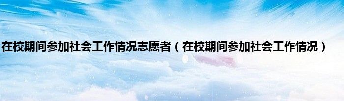 大家好,小问来为大家解答以上问题。在校期间参加社会工作情况志愿者,在校期间参加社会工作情况这个很多人还不知道,现在让我们一起来看看吧!