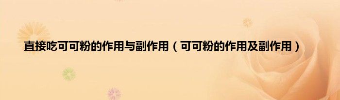 本文,直接吃可可粉的作用与副作用,可可粉的作用及副作用到此就分享完毕,希望对大家有所帮助。