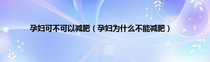 以上就是【孕妇可不可以减肥,孕妇为什么不能减肥】相关内容。