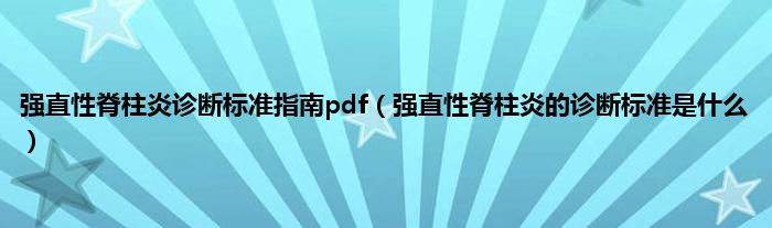 本文,强直性脊柱炎诊断标准指南pdf,强直性脊柱炎的诊断标准是什么到此就分享完毕,希望对大家有所帮助。