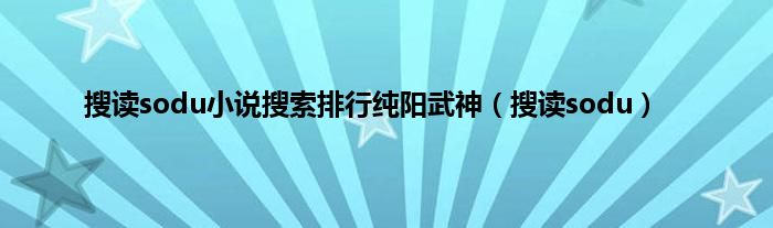 大家好,小问来为大家解答以上问题。搜读sodu小说搜索排行纯阳武神,搜读sodu这个很多人还不知道,现在让我们一起来看看吧!