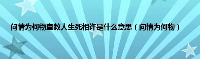 以上就是【问情为何物直教人生死相许是什么意思,问情为何物】相关内容。