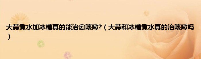 本文,大蒜煮水加冰糖真的能治愈咳嗽?,大蒜和冰糖煮水真的治咳嗽吗到此就分享完毕,希望对大家有所帮助。