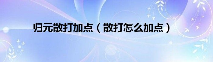 大家好,小问来为大家解答以上问题。归元散打加点,散打怎么加点这个很多人还不知道,现在让我们一起来看看吧!