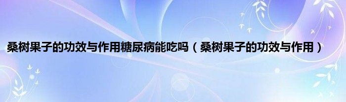 本文,桑树果子的功效与作用糖尿病能吃吗,桑树果子的功效与作用到此就分享完毕,希望对大家有所帮助。