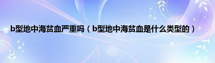 本文,b型地中海贫血严重吗,b型地中海贫血是什么类型的到此就分享完毕,希望对大家有所帮助。