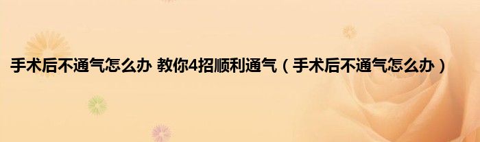 本文,手术后不通气怎么办 教你4招顺利通气,手术后不通气怎么办到此就分享完毕,希望对大家有所帮助。
