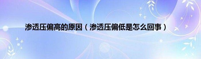 本文,渗透压偏高的原因,渗透压偏低是怎么回事到此就分享完毕,希望对大家有所帮助。