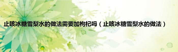 本文,止咳冰糖雪梨水的做法需要加枸杞吗,止咳冰糖雪梨水的做法到此就分享完毕,希望对大家有所帮助。