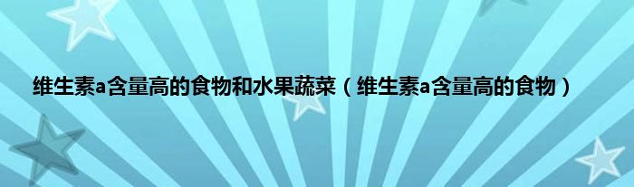 本文,维生素a含量高的食物和水果蔬菜,维生素a含量高的食物到此就分享完毕,希望对大家有所帮助。