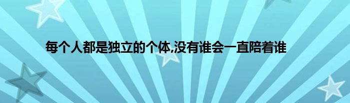 大家好,小问来为大家解答以上问题。每个人都是独立的个体,没有谁会一直陪着谁这个很多人还不知道,现在让我们一起来看看吧!