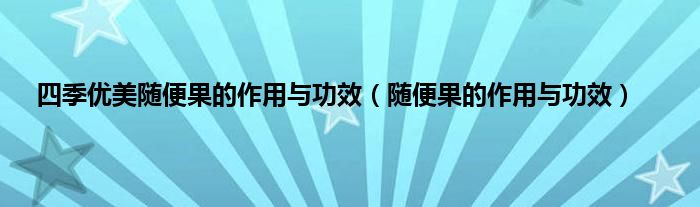 本文,四季优美随便果的作用与功效,随便果的作用与功效到此就分享完毕,希望对大家有所帮助。