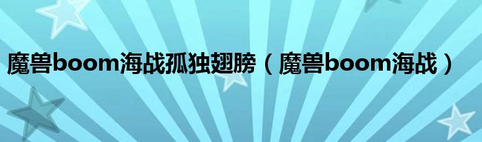 大家好,小问来为大家解答以上问题。魔兽boom海战孤独翅膀,魔兽boom海战这个很多人还不知道,现在让我们一起来看看吧!