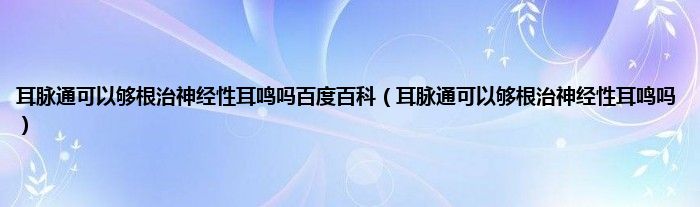 大家好,耳脉通可以够根治神经性耳鸣吗百度百科,耳脉通可以够根治神经性耳鸣吗很多人还不知道,现在让我们一起来看看吧!
