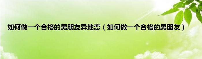 以上就是【如何做一个合格的男朋友异地恋,如何做一个合格的男朋友】相关内容。