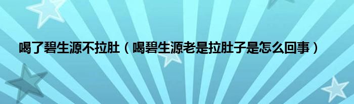 大家好,喝了碧生源不拉肚,喝碧生源老是拉肚子是怎么回事很多人还不知道,现在让我们一起来看看吧!