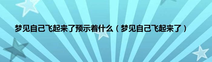 大家好,小问来为大家解答以上问题。梦见自己飞起来了预示着什么,梦见自己飞起来了这个很多人还不知道,现在让我们一起来看看吧!