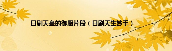 以上就是【日剧天皇的御厨片段,日剧天生妙手】相关内容。