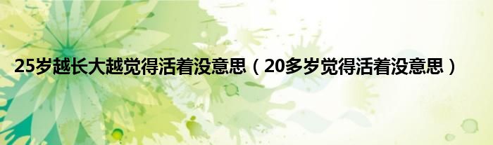以上就是【25岁越长大越觉得活着没意思,20多岁觉得活着没意思】相关内容。
