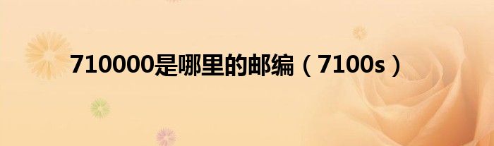 大家好,小问来为大家解答以上问题。710000是哪里的邮编,7100s这个很多人还不知道,现在让我们一起来看看吧!