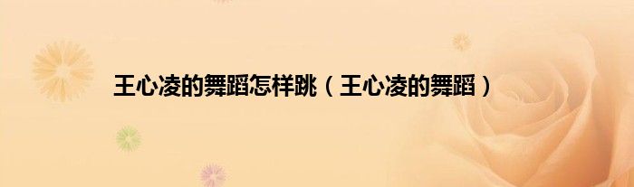 以上就是【王心凌的舞蹈怎样跳,王心凌的舞蹈】相关内容。