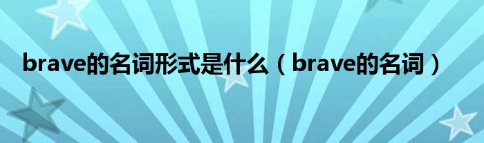 大家好,小问来为大家解答以上问题。brave的名词形式是什么,brave的名词这个很多人还不知道,现在让我们一起来看看吧!