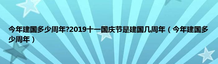 大家好,小问来为大家解答以上问题。今年建国多少周年?2019十一国庆节是建国几周年,今年建国多少周年这个很多人还不知道,现在让我们一起来看看吧!