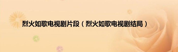 大家好,小问来为大家解答以上问题。烈火如歌电视剧片段,烈火如歌电视剧结局这个很多人还不知道,现在让我们一起来看看吧!