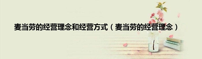 麦当劳的经营理念和经营方式(麦当劳的经营理念)