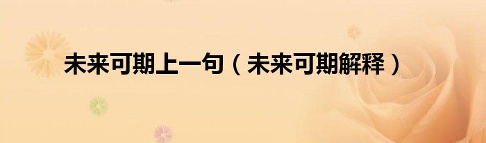 大家好,未来可期上一句,未来可期解释很多人还不知道,现在让我们一起来看看吧!