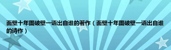 大家好,面壁十年图破壁一语出自谁的著作,面壁十年图破壁一语出自谁的诗作很多人还不知道,现在让我们一起来看看吧!