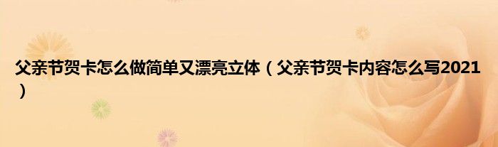 本文,父亲节贺卡怎么做简单又漂亮立体,父亲节贺卡内容怎么写2021到此就分享完毕,希望对大家有所帮助。