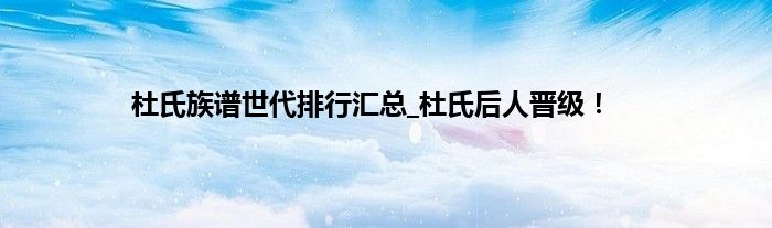 本文杜氏族谱世代排行汇总_杜氏后人晋级!到此分享完毕,希望对大家有所帮助。