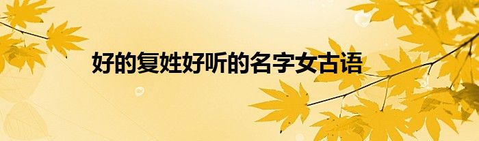 大家好,综合小编来为大家讲解下。好的复姓好听的名字女古语这个很多人还不知道,现在让我们一起来看看吧!