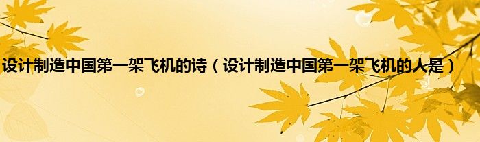 本文,设计制造中国第一架飞机的诗,设计制造中国第一架飞机的人是到此就分享完毕,希望对大家有所帮助。