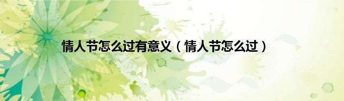 大家好,情人节怎么过有意义,情人节怎么过很多人还不知道,现在让我们一起来看看吧!