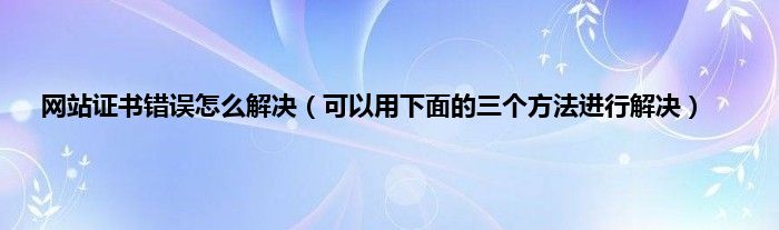 大家好,网站证书错误怎么解决,可以用下面的三个方法进行解决很多人还不知道,现在让我们一起来看看吧!