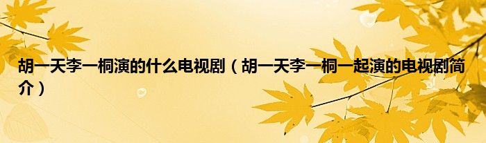 本文,胡一天李一桐演的什么电视剧,胡一天李一桐一起演的电视剧简介到此就分享完毕,希望对大家有所帮助。
