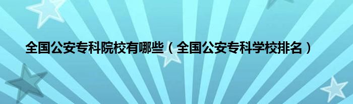 本文,全国公安专科院校有哪些,全国公安专科学校排名到此就分享完毕,希望对大家有所帮助。